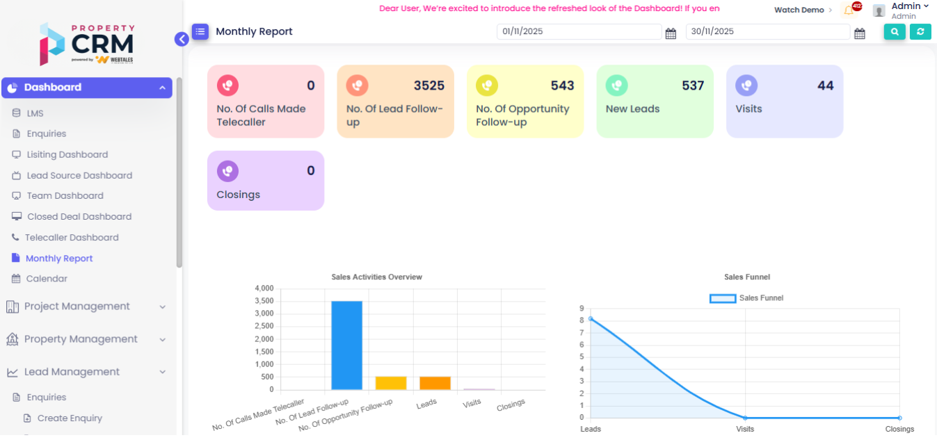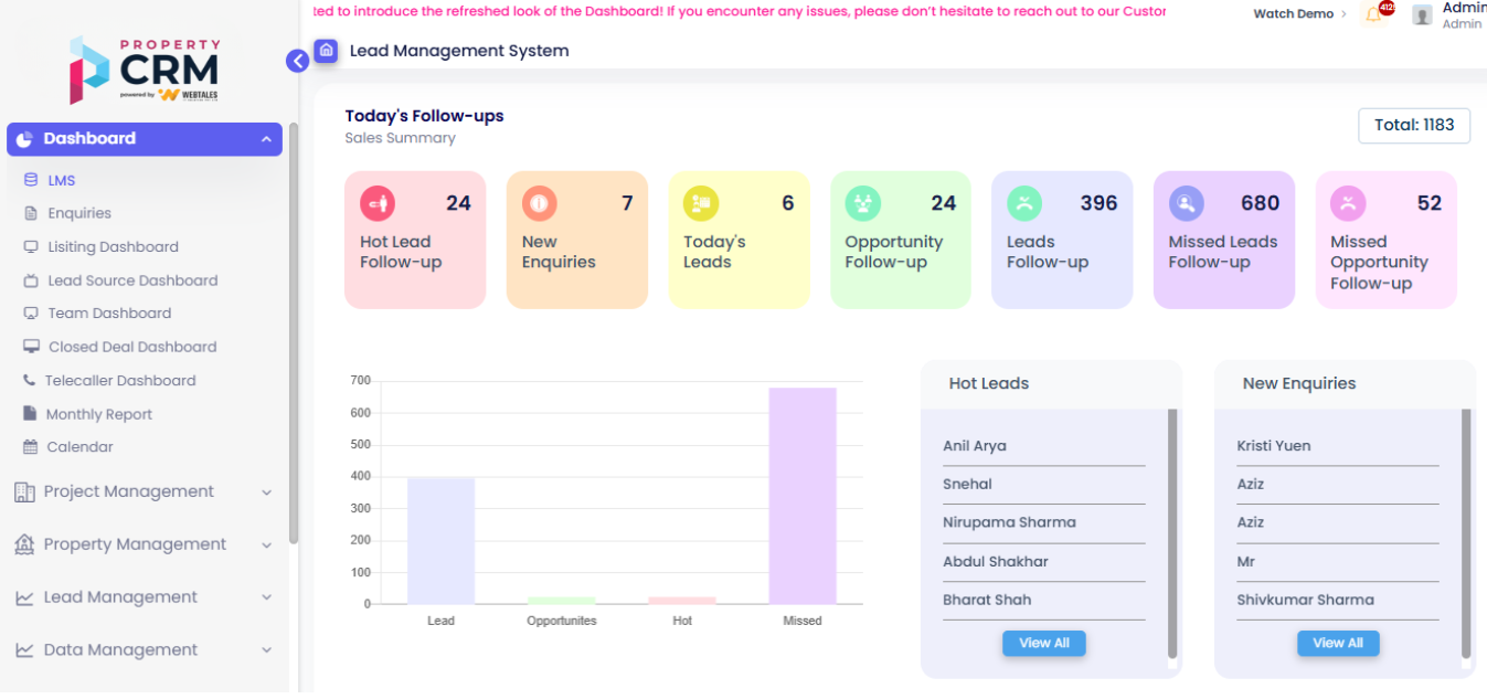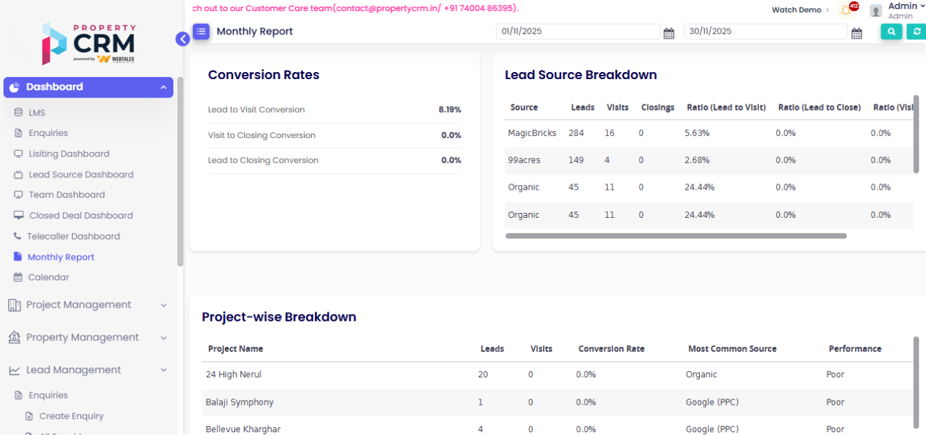Property CRM provides powerful analytics dashboards that track sales performance, conversion rates, and lead sources. These insights help real estate businesses make data-driven decisions and improve overall efficiency.