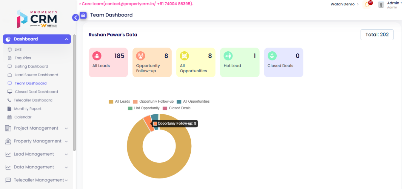 A real estate management software connects sales teams, tele-callers, and managers on a single dashboard. It allows real-time updates, lead sharing, and task assignments, ensuring everyone stays aligned and productive across all property operations.