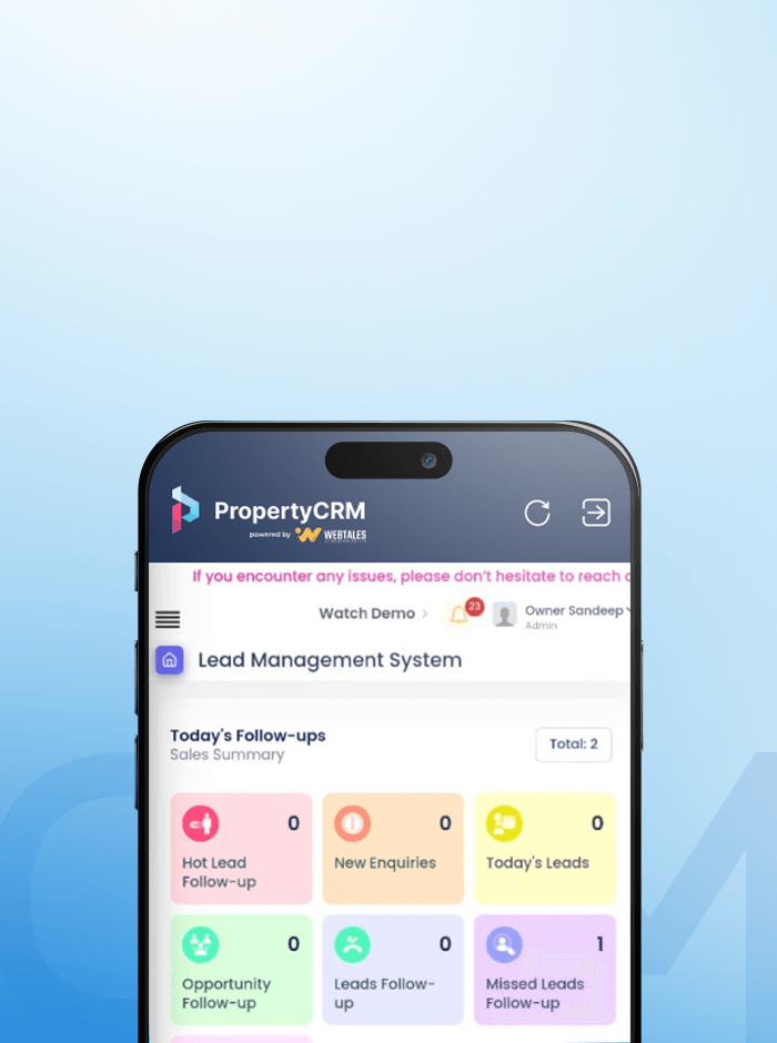 Webtales Property CRM is the absolute solution. It has easy-to-use lead management tool, it can streamline the process of managing property listings and optimize communication with all business contacts (customers, builders & other agents) to strengthen relationships.